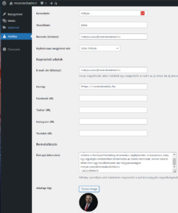 Ez az e-learning rendszer WordPress alapon fut, így az adatlapnál a WordPress felhasználói adatlappal fogsz találkozni.